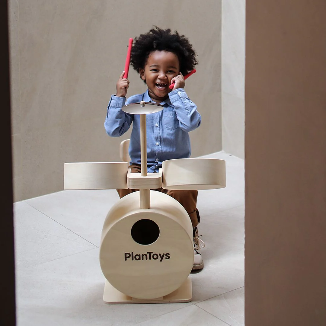Join a rock band and take center stage with the PlanToys Drum Set! This musical playset is the first one in the world to be entirely made out of wood and comes with the ability to produce a variety of sounds and rhythms. Complete with a snare drum, tom drum, and bass drum with a kick pedal, cymbal, and pair of rubber drum sticks, children can strengthen their hand-eye coordination, motor skills, ability to concentrate, auditory acuity, and more.