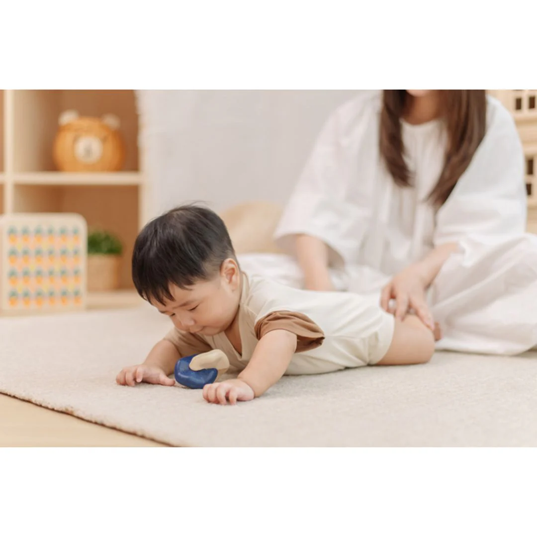 - Encourages grasping and purposeful movement through smooth, natural textures.