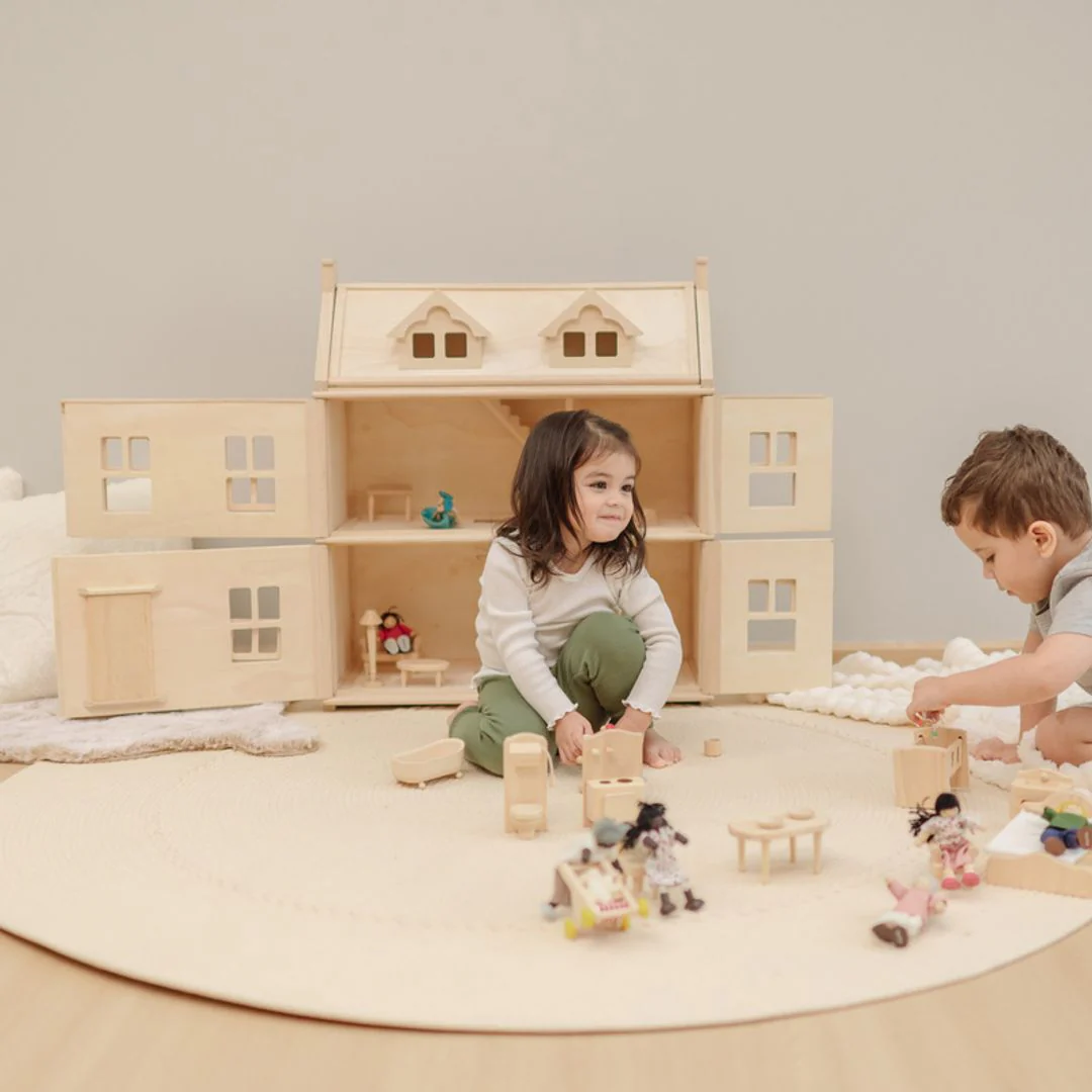 - The most popular PlanToys dollhouse available with 3 floors (including an attic), opening panels and functional sashes that slide open and shut